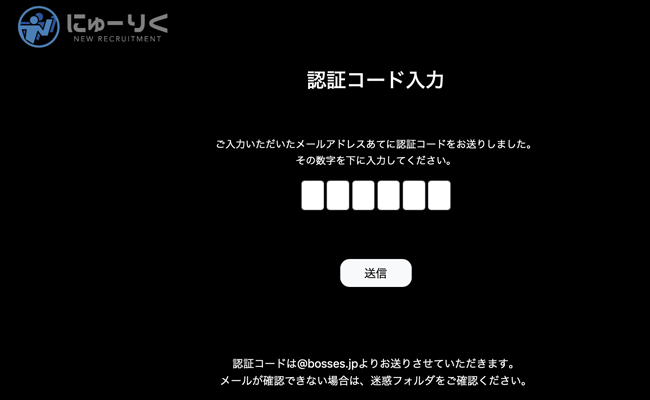 「にゅーりく」では、セキュリティを強化するために、認証コード(6桁の数字)を登録したメールアドレスに送信して、ログインする方式を採用しています。